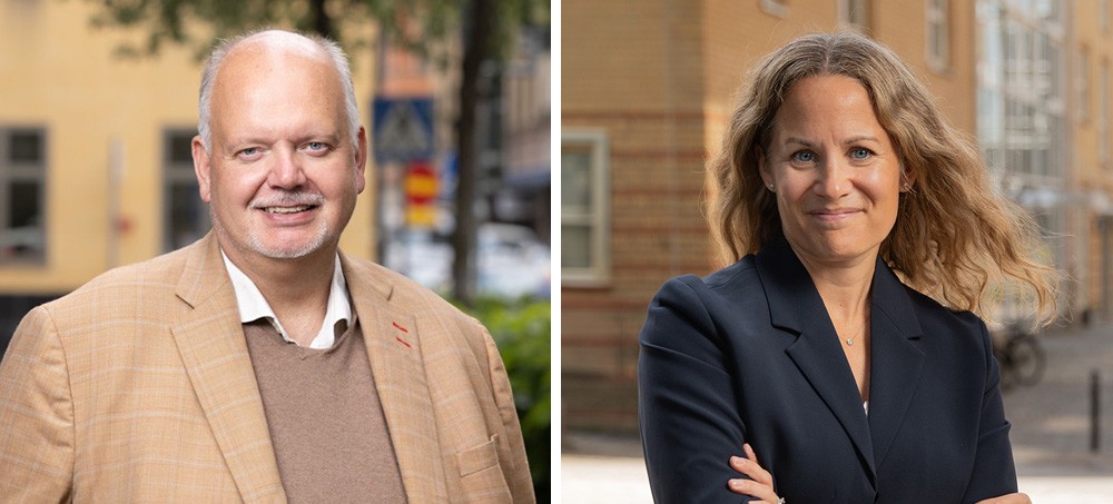 Till vänster, Pär Larshans, hållbarhetschef på Ragn-Sells och till höger, Sara Stiernström, produktutvecklingschef på EasyMining. Foto: Ragn-Sells.